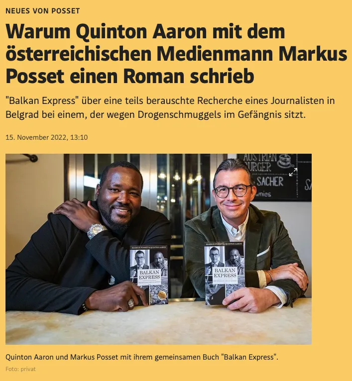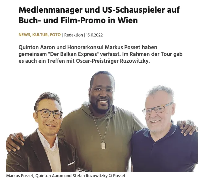 Markus Posset und Hollywood-Schauspieler Quinton Aaron (bekannt aus The Blind Side) haben ein Buch geschrieben, das auf einer wahren Begebenheit beruht. Zusammen haben Sie das Werk in Wien promotet. Unter anderem hat IKahnTv mit vidi.at ein Interview geführt. Das ist das Ergebnis.