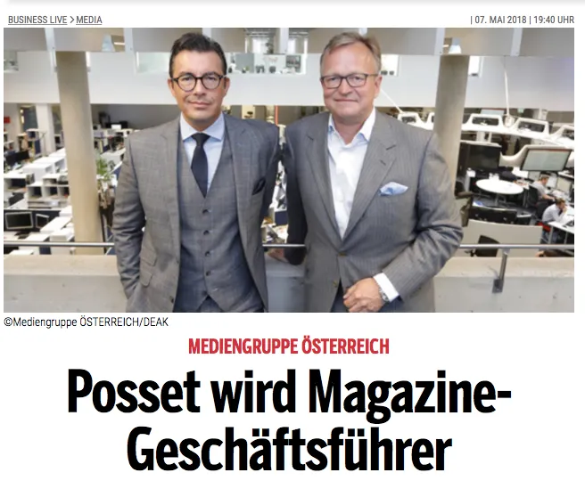 Weiters war POSSET in seiner Zeit als COO des Echo Medienhauses, Gründer und Herausgeber des ersten europäischen Start-up-Magazins „Seeds“ mit BMW, A1, TMobil, Puls4, Sat1, etc. als Partnern.